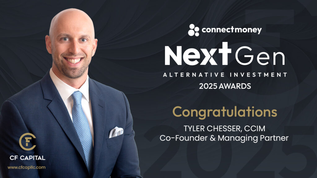 Congratulations to Tyler Chesser, CCIM, Co-Founder & Managing Partner of CF Capital, on being named a ConnectMoney NextGen Alternative Investment Award recipient.
